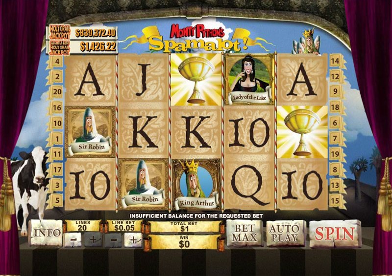 Monty Python’s Flying Circus was a cult English comedy show that has a strong base of fans years after it ended. Aside from the show, the group of comedians went on making several films as well, which were also a huge success. Their wit and sarcasm conquered the hearts of geeks, who will definitely enjoy playing Playtech’s slot machine Monty Python’s Spamalot. Equipped with symbols that feature popular characters from the show like Lady of the Lake, Sir Robin, Sir Lancelot, King Arthur and Sir Galahad, the game will make you smile even when you’re not winning. The slot is rich with special features, thus it’s pretty rewarding too. Players will get a chance to scoop additional coins on bonus games such as the Storm The Castle, Knights Who Say Ni and Killer Rabbit.